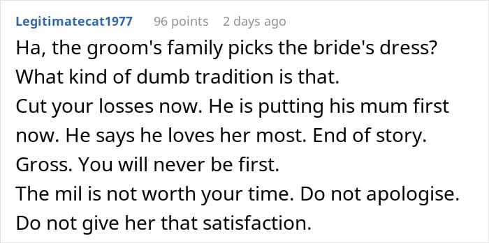 A few days ago, Reddit user Sad_Highlight31 described how her fiancé’s family excluded her from dress shopping, and when she expressed her disappointment about it, they outright said that her opinion didn’t matter.