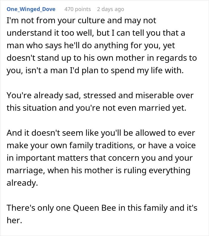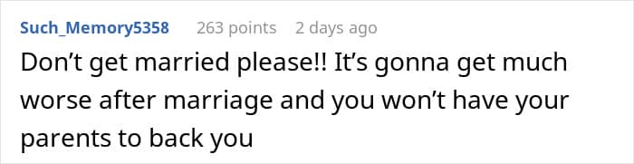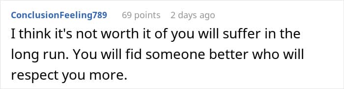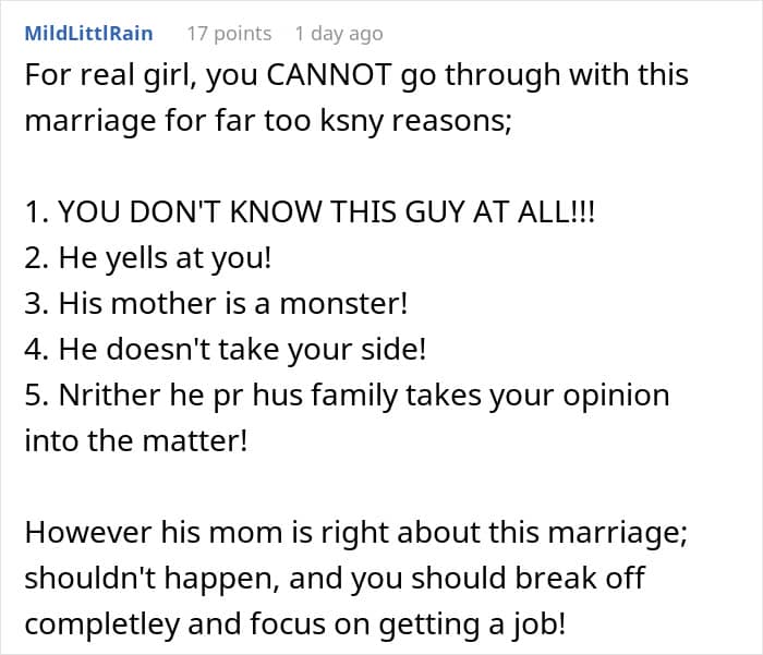 People who read the woman’s story have been saying she should call off the wedding