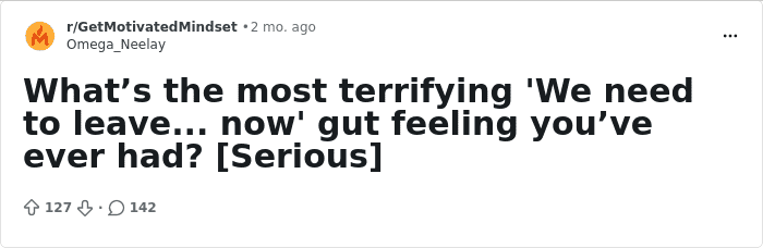 On Reddit, plenty of people have shared stories that prove exactly that. Across different threads, they recalled the times their gut told them to “leave now,” and listening ended up saving them from genuinely terrifying situations. Read them below—and take it as a reminder to trust your intuition when something feels off.