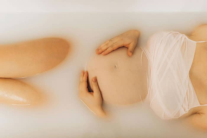 The author, 40 weeks pregnant, took a late-night bath to ease two days of contractions and cramping