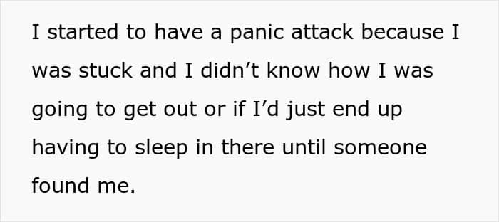 After nearly 40 minutes of struggling and calling for help, her partner finally woke up to repeated phone calls. She explained through tears that she couldn’t get out and was having a panic attack. Instead of comfort, she was met with raised voices. He accused her of not asking for help, ignoring the fact that she had tried multiple ways to reach him.