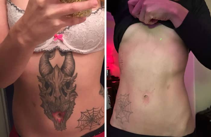 Breakups and life changes. “Names of ex-partners are probably the number one request,” she admits. “I have had some clients that got a tattoo with a best friend years ago… and now they aren’t friends anymore.” #22 Before And After Progress