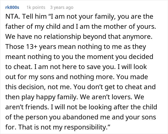 Research highlights why situations like this OP’s can be so emotionally charged and complicated. Family Court Corner highlights that high-conflict divorces often continue to affect everyone involved long after the legal proceedings end, especially when clear emotional and practical boundaries aren’t established.