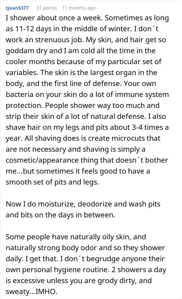 RELATED:You don’t have to shower every day, but experts warn you shouldn’t go too long without one either