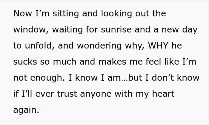 Around 22% of people admit to cheating on their partner before marriage. Meanwhile, 22% had never confessed their affair to their significant other. If a cheater doesn’t come forward about infidelity, the signs of unfaithfulness can go unnoticed for a long time, as per this story’s example.