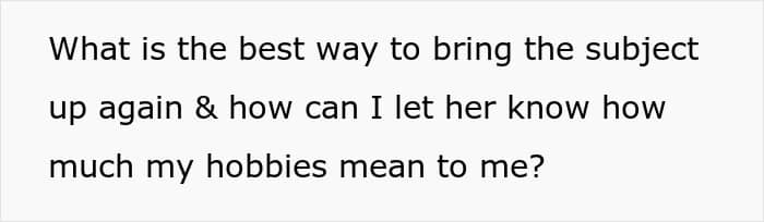 She adds that you could also consider giving birthday or Christmas gifts that support his hobby. Or why not give the gift of time by carving out space in the family schedule that allows your spouse time to do what they love?