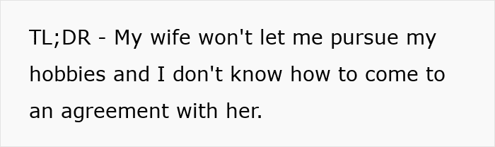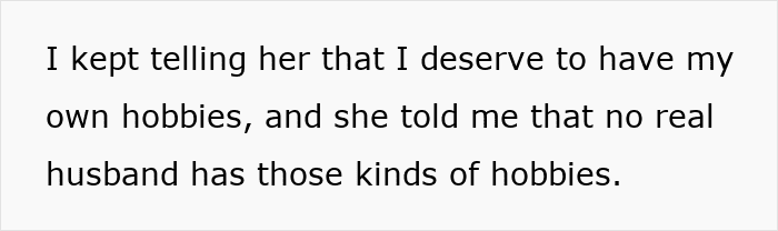 “Generally, it is either that she is jealous of his prioritization of the hobby because she feels he is always avoiding time with her, or that he is acting more self-centered (including leaving her with the kids constantly) due to the hobby,” Whiten reveals. “And of course, sometimes she is overwhelmed and stressed, and the time he spends engaged in the hobby is terrifying to her because she is too depressed, anxious, or overwhelmed to manage the kids alone during the time he spends away.”