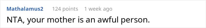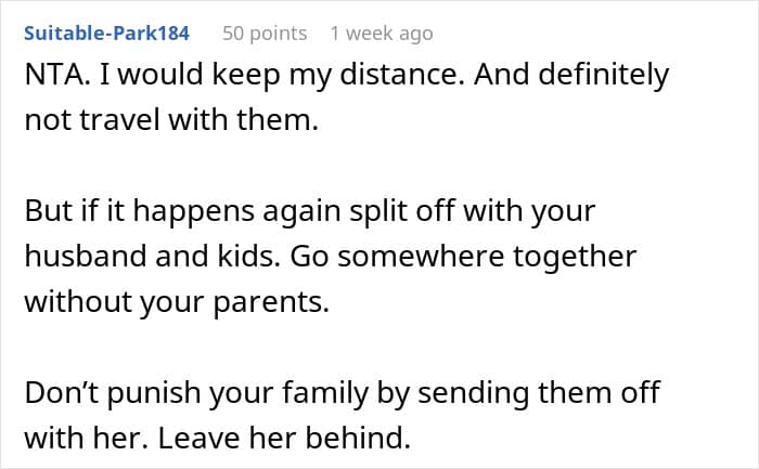 Many also advised her to set boundaries and prioritize her well-being, recommending that she distance herself from her mother and avoid joint vacations in the future as it would be better for her mental health.