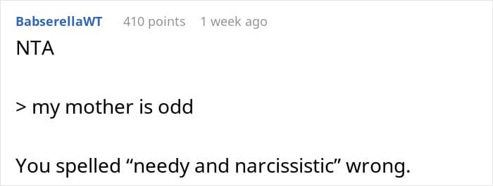 Netizens rallied around the OP, affirming that she did nothing wrong by walking away. Rather, they described her mother as “needy and narcissistic”, stating that her actions were harmful and uncalled for.