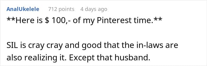 Unfortunately, the poster’s brother-in-law called her spoiled and selfish for refusing the gift, and her sister-in-law blocked her out of spite