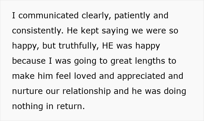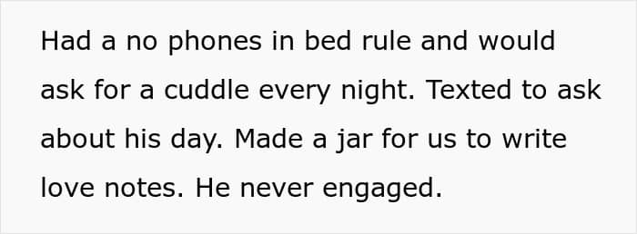 After a huge blow-up, she decided to match his effort… meaning none. Instead of begging for connection, she spent that energy on herself. New hobbies, stronger friendships, better mental and physical health. Meanwhile, the couple’s intimacy faded to zero, which she just assumed was mutual exhaustion.
