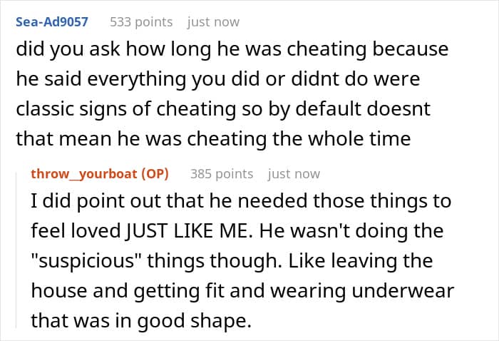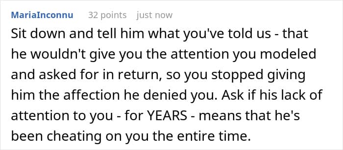 In the comments, readers suggested the woman ask her husband how long he’s been cheating on her since, based on his logic, his lack of effort means he obviously must be