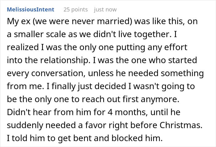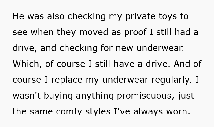His birthday exposed the truth, though. OP kept things simple, matching his minimalist energy, but he threw a tantrum when no special surprise materialized. Then came the wild accusation: she must be cheating. Suddenly her self-care and quiet independence were “proof.” He even snooped through her underwear and adult toys, looking for imaginary clues, while ignoring every need she’d actually expressed.