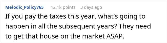 RELATED:Couple spends $75k renovating the parents’ home, expecting to get it back after they pass away, once the house is sold, but the youngest sister inherits the house and asks them for tax money