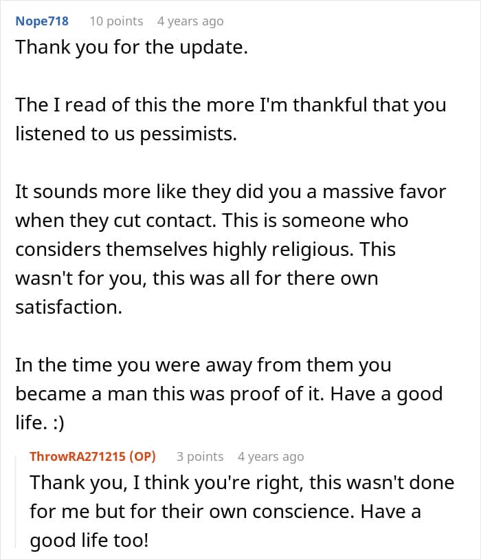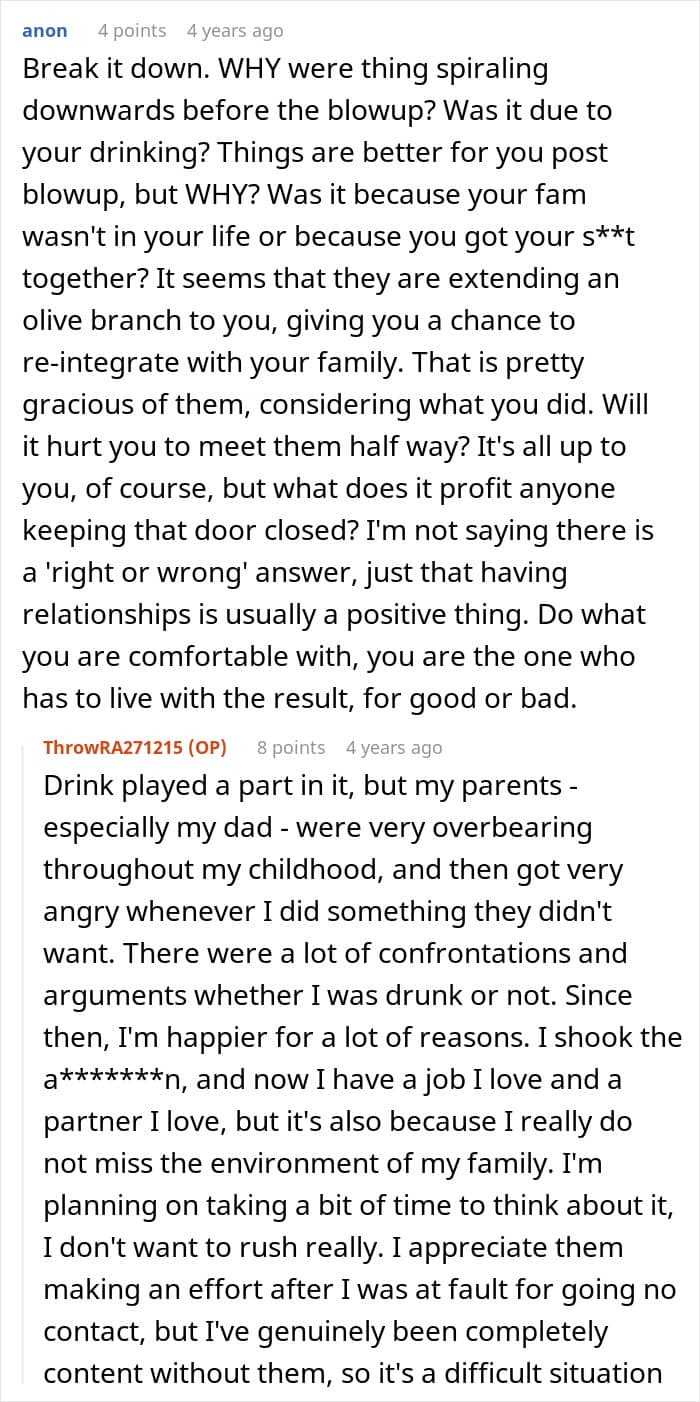 One man, however, has been estranged from his parents and siblings for the past five years. And over time, he realized that was probably for the best. But now, he’s reaching out to the internet for advice because his mother has suddenly decided that it’s time for him to reunite with the family. Below, you’ll find the full story that he shared on Reddit, as well as some of the responses invested readers left him.