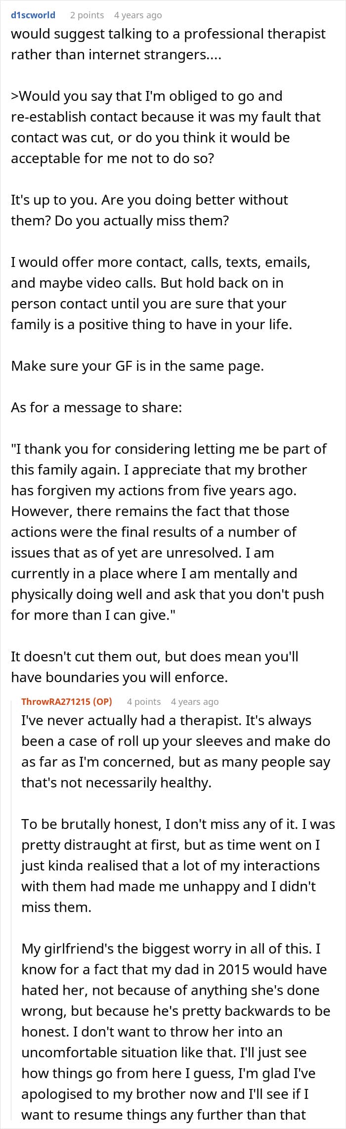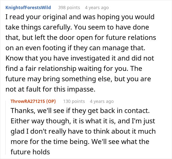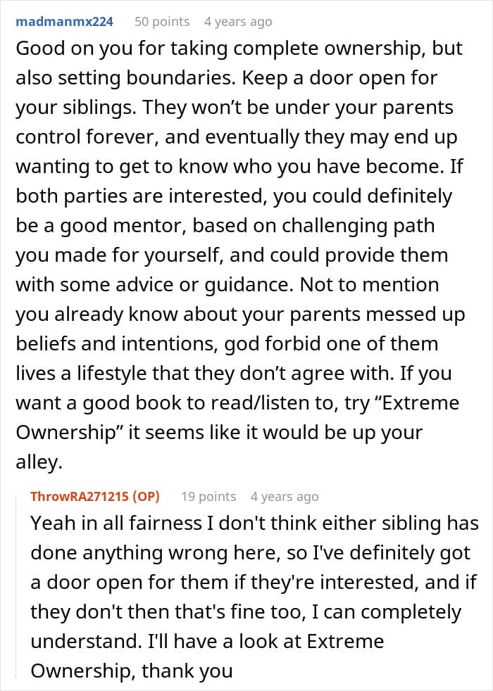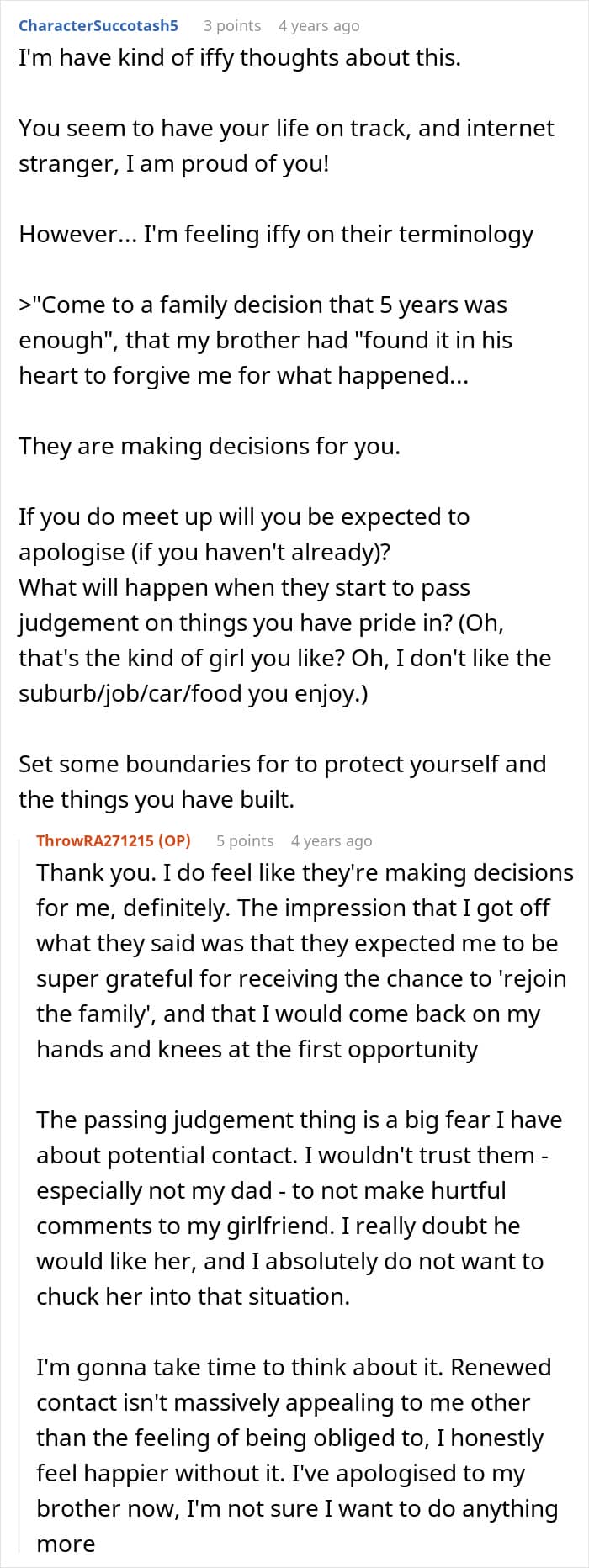 Readers assured the author that he was allowed to enforce boundaries with his family, and he joined in on the conversation