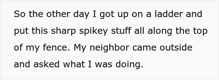 Frustrated, they installed sharp spikes along the top of his fence and informed the neighbor, warning that her son could get hurt