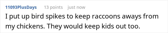 Netizens sided with the OP, emphasizing that they had repeatedly tried to address the problem before resorting to spikes. They also pointed out that the neighbor’s child and mother were at fault for ignoring boundaries and warnings. What do you think about this situation? Do you think the OP went too far, or was this a justified way to protect their privacy? We would love to know your thoughts!