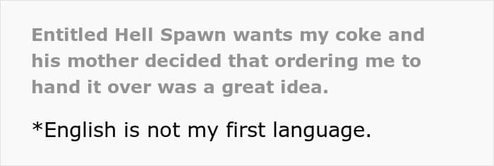 Arrogant mother leaned over and said, “He really wants your drink. Just give it to him”