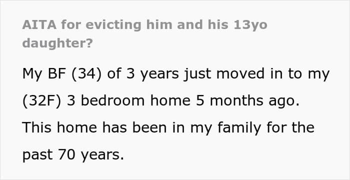 Netizens sided firmly with the OP, emphasizing that she was not at fault for enforcing boundaries in her own home. They criticized the boyfriend’s parenting and the daughter’s behavior, highlighting the entitlement and disrespect displayed. What do you think about this situation? Do you think the eviction was too harsh, or completely justified? We would love to know your thoughts!