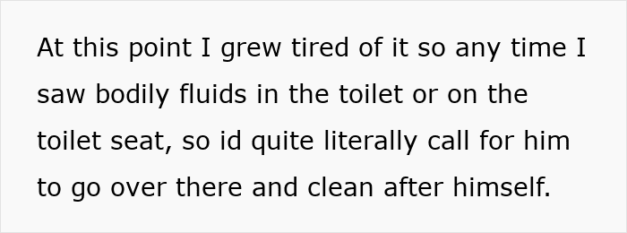 Eventually, the author embarrassed her brother in front of his friends, and he began cleaning up after himself, effectively ending the ongoing bathroom problem