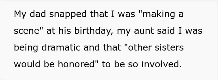 When she finally pushed back, though, her parents accused her of being selfish and her aunt even sent her text that was basically a shameless guilt-trip