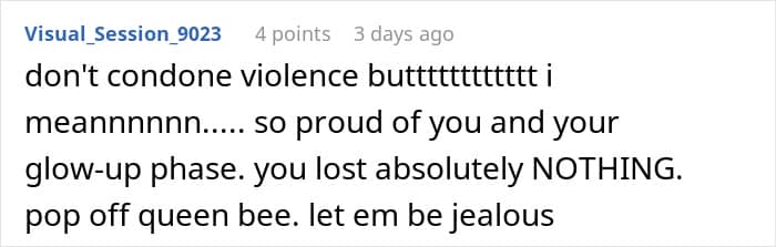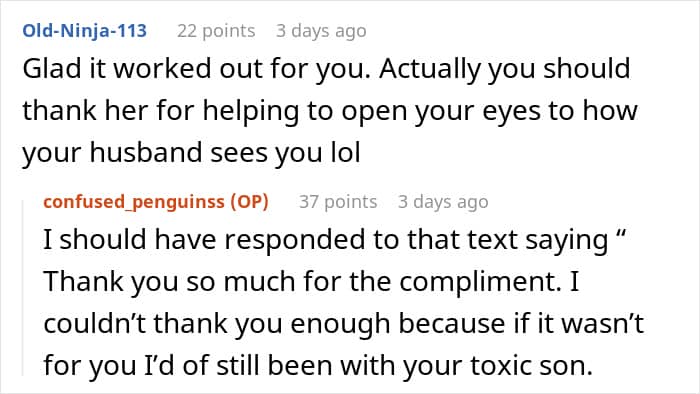 In this case, it seems the author was able to reclaim her life and well-being after leaving her husband. Her mother-in-law’s hurtful comments may have been the catalyst that pushed her toward making a positive change. What do you think about her decision? Share your thoughts in the comments below.