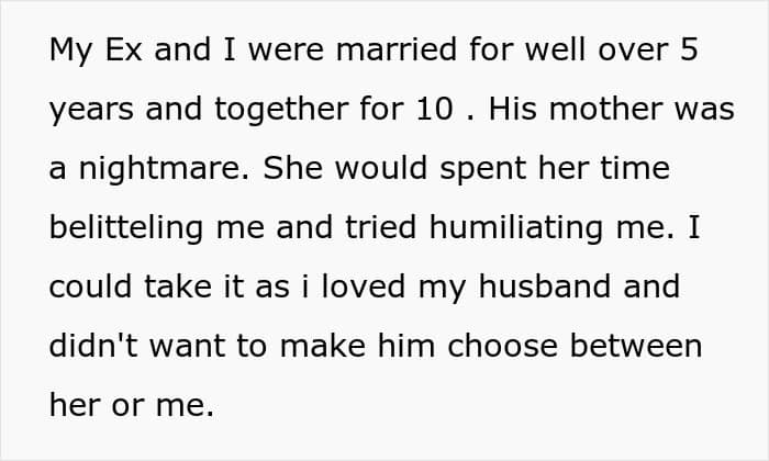 Just like it happened to this couple, where the woman was constantly berated by her mother-in-law, but her husband would do nothing about it. After 10 years, such behavior finally pushed the wife to file for divorce, but even after that, they didn’t leave her alone and aimed to ruin her life.