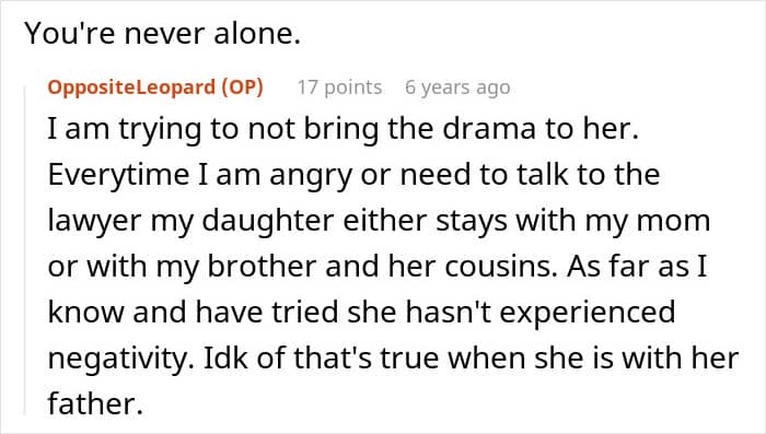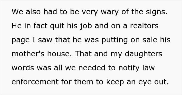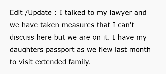 Later, the woman came back with an update, which revealed that her ex wanted to take her daughter out of the country