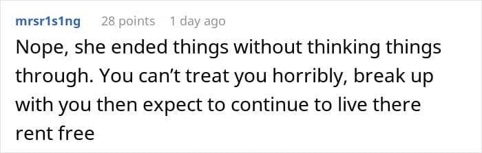 After all of the disagreements, the woman finally broke up with the poster, which is when he decided to tell her to move out of his condo. She obviously didn’t think he would kick her out, and since she had nowhere else to go, she decided to come up with a plan to make sure she could keep living there.
