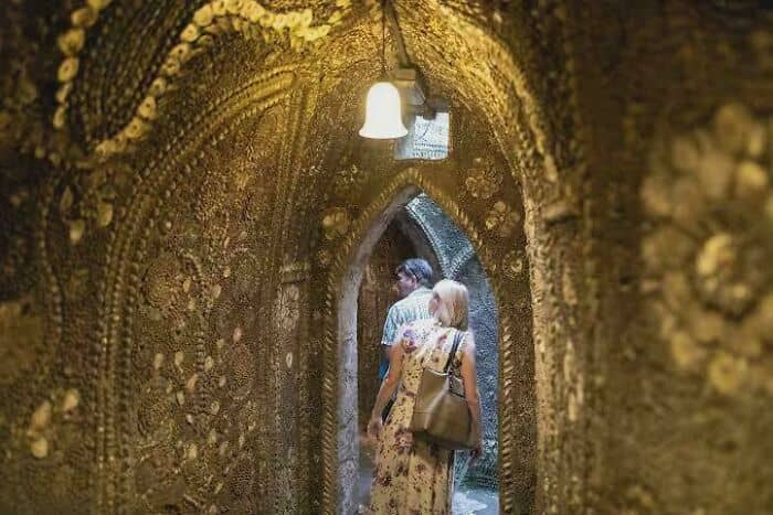 It’s a 104-foot passage covered with 4.6 million shells arranged in patterns, and its origin remains a mystery even now. You can still walk through it today.