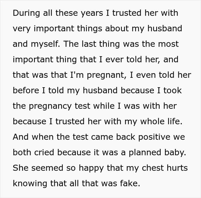 Since the woman was so close to her friend, she revealed her pregnancy news to her before even telling her husband, but things started changing after that