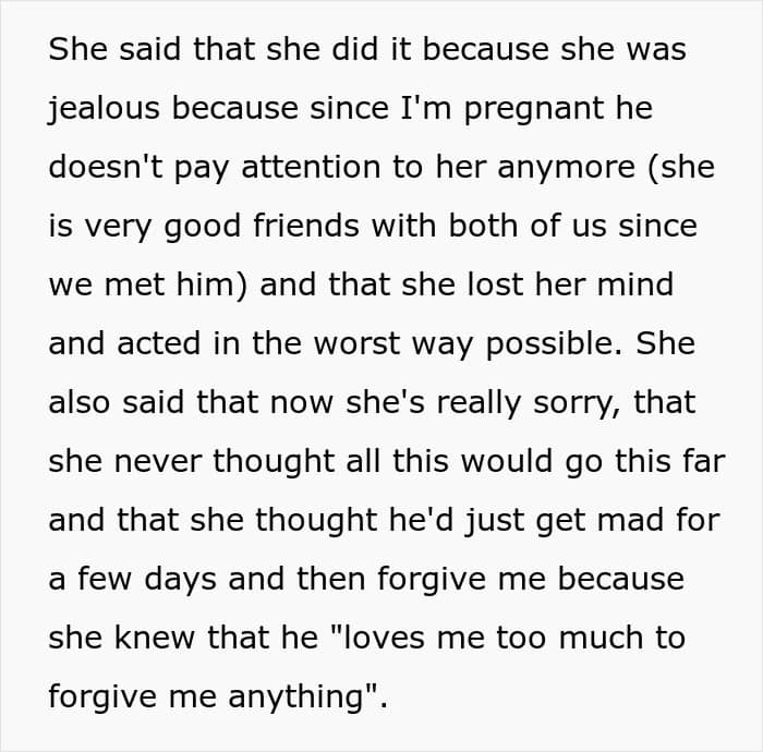 This is what happened to one pregnant woman when her close friend of a decade told her husband a lot of lies about her being a cheater. Unfortunately, these falsehoods caused such big cracks in their relationship that it became hard to repair when she finally came clean.