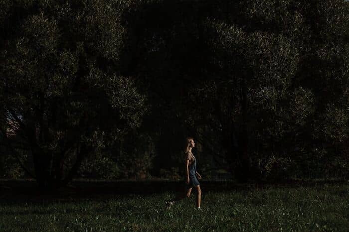 The police officer got angry with me and decided to go back to the 10 acres while I continued with my K9 into a new area. 5 mins later my dog gives an alert and I watch which way she went. I climbed over a huge tree to find the lady standing there in shock. She went passed out as soon as I said who I was and asked her what her name was.
