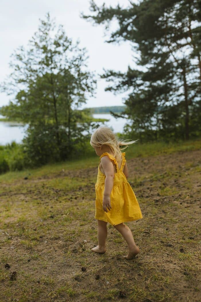 The way this road was situated was a hairpin turn off a highway that led to a dead end at a lake with a stretch in the middle of it going up towards the houses. As I make this right turn and am about to head up towards the residence, something catches my eye. This litte girl is standing at the edge of this lake, just staring at it.