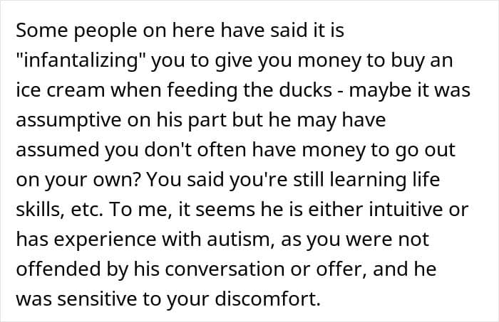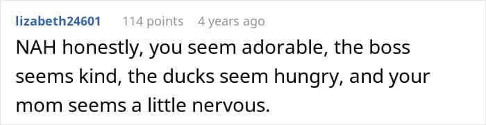 The story is luckily such a heart-warming example of what happens when autistic people have to navigate situations full of social cues they genuinely struggle to perceive. If anything, it’s uplifting that the mother’s boss understood that better than anyone and reacted with genuine kindness. And of course, the ducks probably appreciated the gesture too.