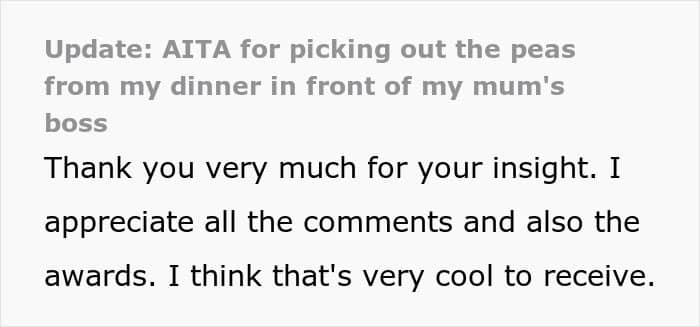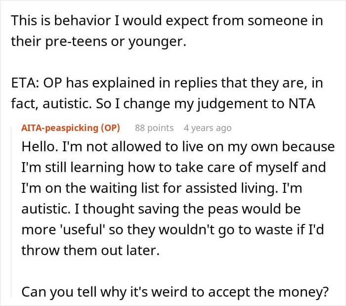 For people with autism, though, “reading the room” isn’t always straightforward. So when this Redditor joined his mother’s dinner with coworkers and was served a dish full of peas he couldn’t stand, he calmly picked them out. His mom, however, felt embarrassed watching it happen. Unsure why it caused such a reaction, he turned to the internet to ask if he was in the wrong.