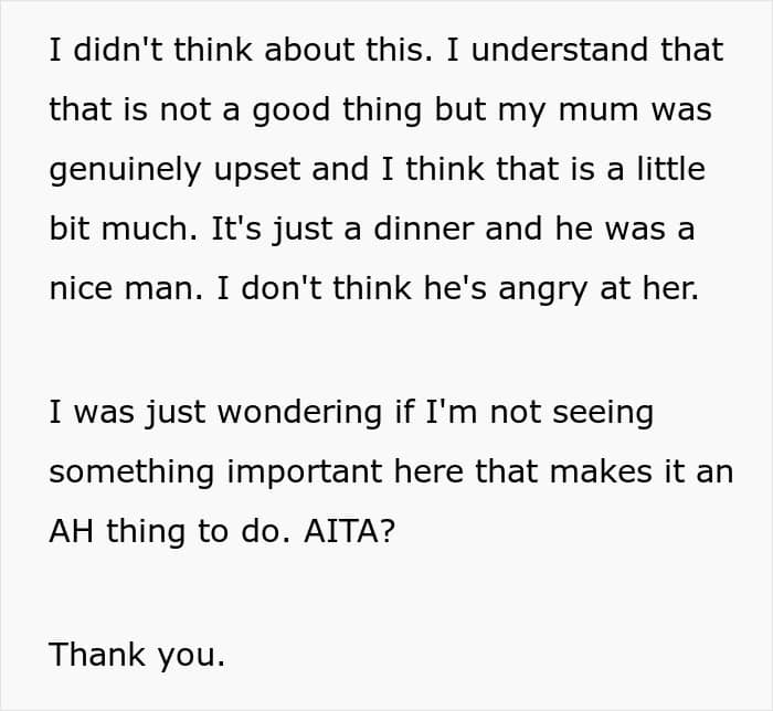 RELATED:The man joined his mother’s dinner with coworkers but unintentionally upset her with his eating habit