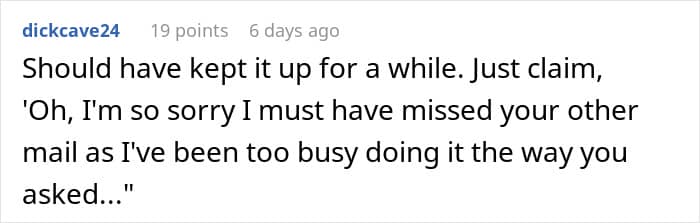 Eventually, the redditor relented and did just that. Scroll down for the full story and how her colleague reacted once she got what she wished for.