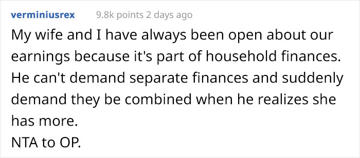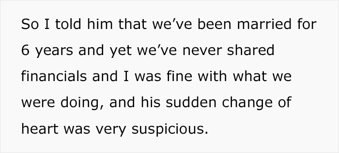 This story from a 32 Y.O. woman who has been married for 6 years gives us a glimpse into what happens when the financial dynamics in the family change. “Before we got married he had me sign a prenup stating that our financials would always be separate,” the author explained in a post on r/AITA and added that “the reason for this was because he was making pretty good money and I was in graduate school so my financial situation was pretty bad but I signed nonetheless.”