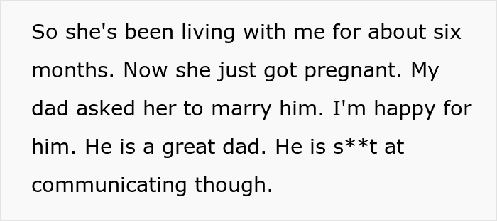 It’s been half a year since they all moved in, and now that the stepmom’s with child, she’s started asking the 23-year-old to relocate as they’ll be needing the room for the newborn.