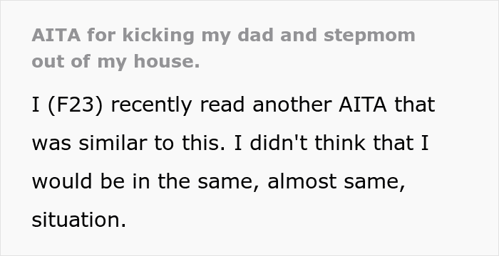 “AITA for kicking my dad and stepmom out of my house?” – this netizen turned to one of Reddit’s most popular communities, asking whether she’s indeed a jerk for revealing the truth that caused her dad and stepmother to move out of her house. The post has managed to receive over 8K upvotes, as well as 781 comments discussing the situation.