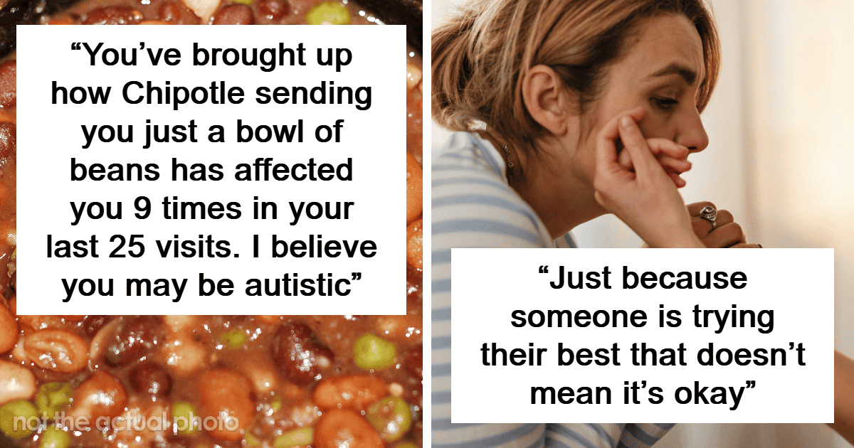 “You’ve brought up how Chipotle sending you just a bowl of beans in a DoorDash order has affected you 9 times in your last 25 visits. I believe you may be autistic.”