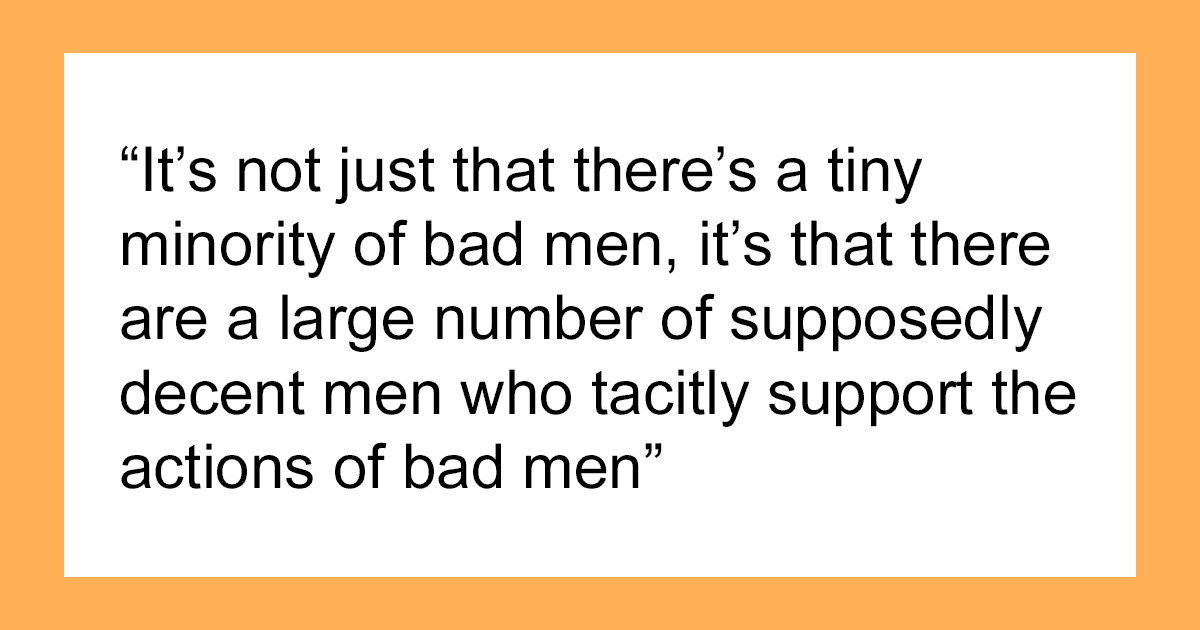 It’s not just that there’s a tiny minority of bad men, it’s that there are a large number of supposedly decent men who tacitly support the actions of bad men.