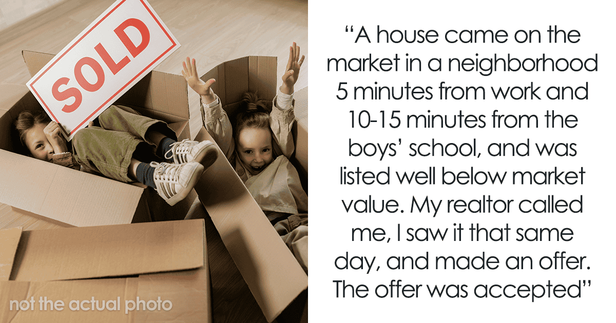 Here’s where it gets tricky. The OP has been house hunting for a while because his current home just isn’t cutting it. His job is a brutal 30-minute commute, and the boys’ school? A dreaded 45-minute ride away. So, when the unicorn of houses (perfect location, perfect price) appeared out of nowhere, he jumped on it, with a same-day offer, deal-sealed kind of jumping. I must say, I respect the hustle.
