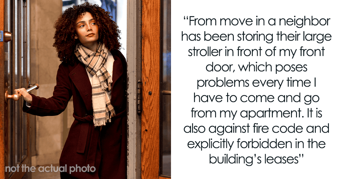 This story took place recently, when the Original Poster (OP), a 32-year-old mom, moved into a new apartment on the ground floor of a 3-story building. A couple in their 40s with a toddler son live on the floor above, and they have taken to leaving their baby stroller right in front of our heroine’s door, thus literally blocking it.