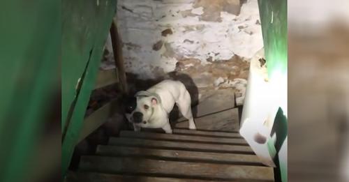 The Man Opens Basement Door Of The New Home And Sees A Dog That Was Left Behind