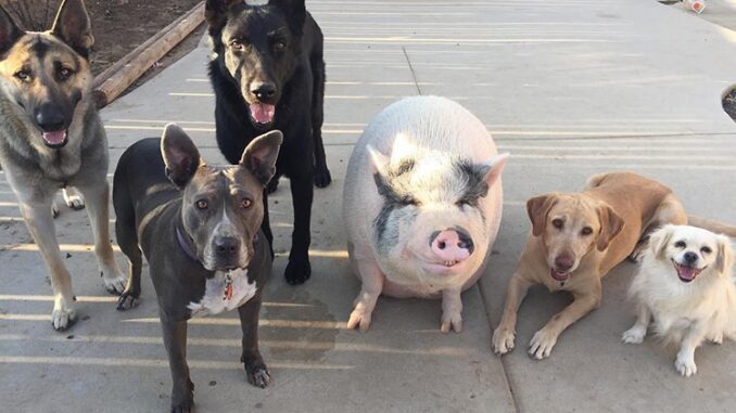 Pot Bellied Pig Happily Raised with 5 Dogs Thinks He’s Just Like His Canine Crew