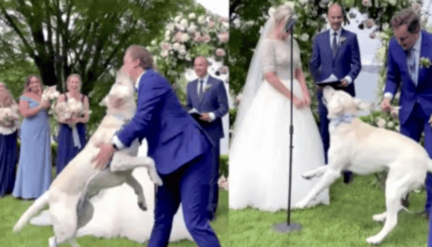 Ring Bearer Dog Forgets His Training When It Counts And Runs Down The Aisle