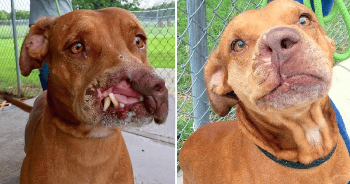 The poor dog lost part of his face and was abandoned by his owner, but luck came to him, making his life seem to turn a new page better than ever.